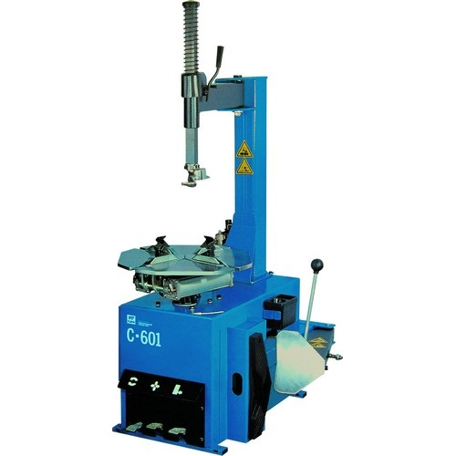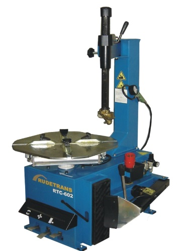 Полуавтоматический шиномонтажный станок. Монтажная консоль отклоняется в сторону вручную.
